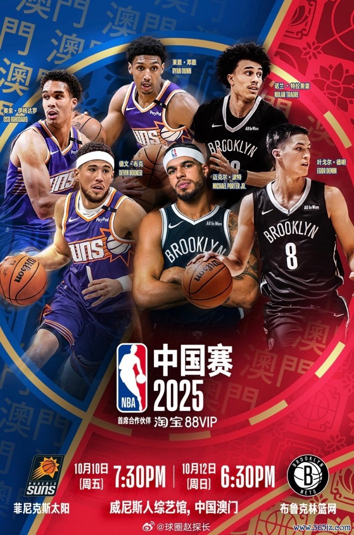 今年NBA中国赛将于10月10日、12日在澳门开打球探旧版即时比分手机,对阵双方是篮网和太阳。