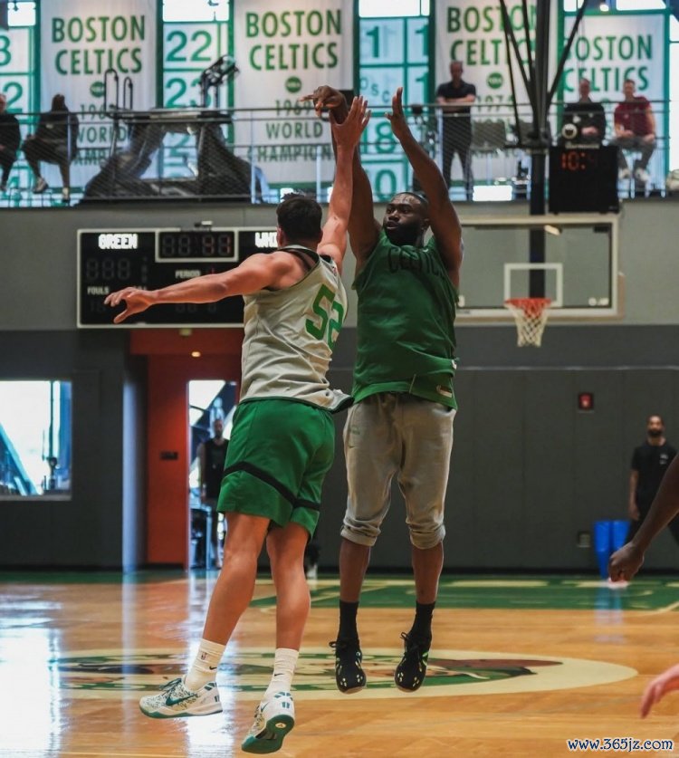 他太想打球了!绿军自媒体晒图:杰伦-布朗跳投 塔图姆暗中观察