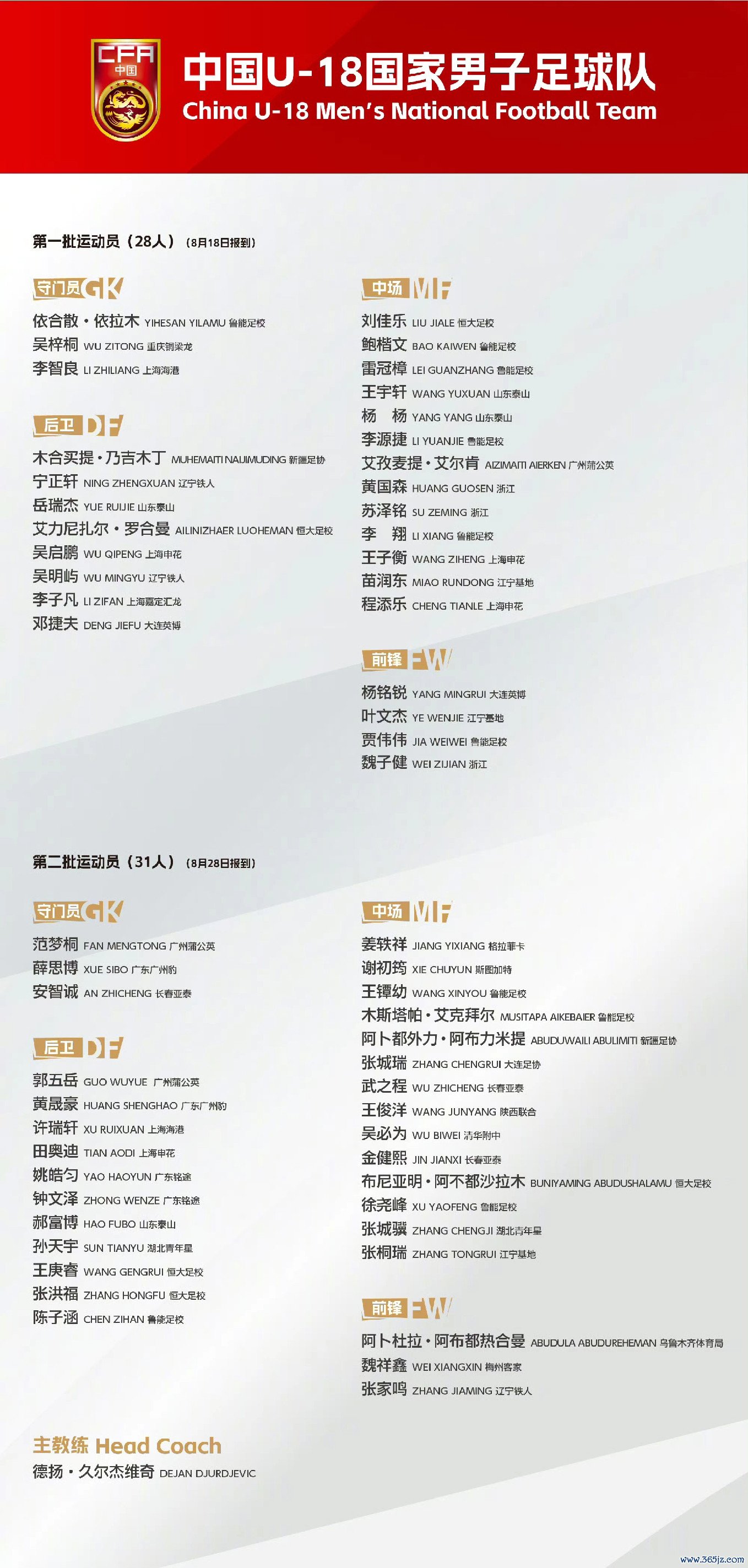 不久前结束的中日韩青少年运动活动 会中,主指导教练员久尔杰维奇所带领的那支U18是此轮集训的第一批队员,最终球队在赛事 中战胜了包头U18联队和日本清水鼓动U18梯队,并输给了韩国仁川联U18梯队,最终获得了赛事第二名的成绩,队中的球员包含杨铭锐、苗润东、魏子健等队员。
