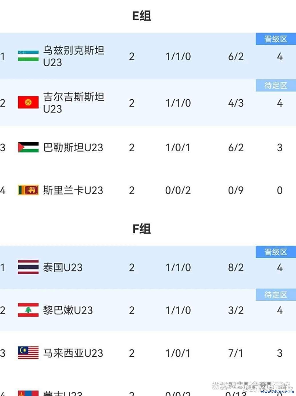 E组和F组:末轮乌兹别克斯坦VS巴勒斯坦、吉尔吉斯斯坦VS斯里兰卡,两队唯有全部赢球,才可能对国足形成积分优势;泰国VS马来西亚,黎巴嫩VS蒙古,情况比较微妙,积3的马来西亚,也可能与国足形成小组第二净胜球比较!但是国足净胜球目前+12,在泰国黎巴嫩不全胜情况下,国足大概率占据优势;
