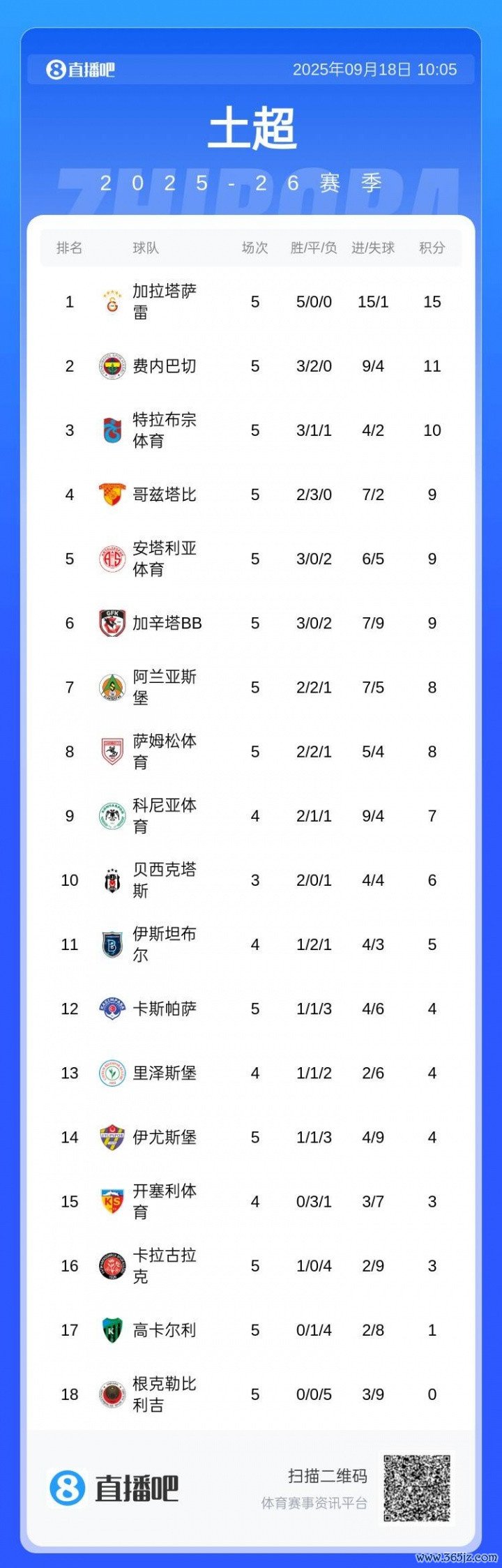 巴塞罗那费内巴切则是土超四连亚(上次夺魁 是13/14赛季),后者始终翻越不了加拉塔萨雷这座山。本赛季一开始,猛将如云的加拉塔萨雷凶猛无比,狂轰15球仅1失球豪取5连胜,本赛季土超难道又大结局了吗?