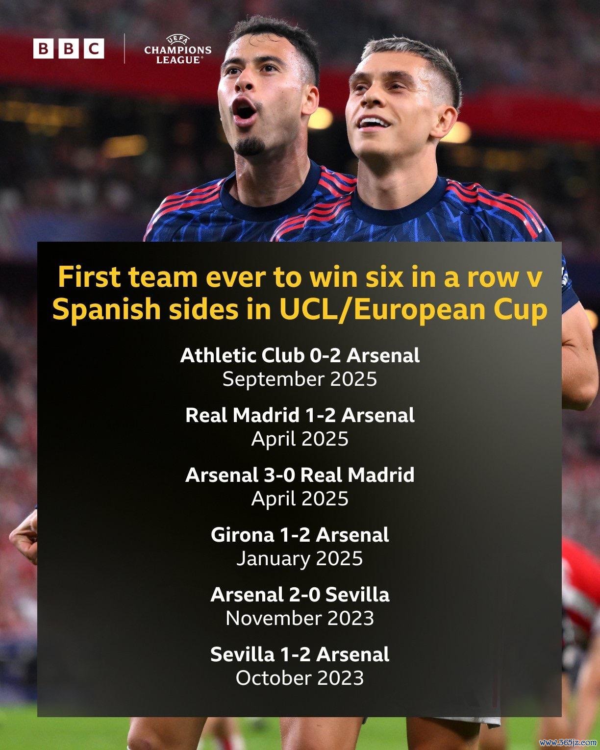 虎扑09月16日讯当时时间9月16日,阿森纳在客场应战 2-0击败毕尔巴鄂竞赛 后,篮球快讯直播平台成为欧冠/欧洲第一名 杯历史上首支连续6场击败西班牙球队的球队。