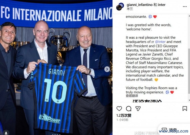 因凡蒂诺写道:我这次的经历可以用“回家”来形容。非常荣幸能访问国米总部, 法甲新闻网直播平台并与俱乐部CEO马洛塔、副主席兼国际足坛传奇萨内蒂、首席营收官乔治-里奇以及首席参谋马克西米里亚诺-卡塔内塞会面。我们讨论了许多重要议题足球赛程, 巴塞罗那包括球员福祉、国际赛事 日赛程以及古代足球 的未来等等。参观俱乐部荣誉室是一次深受触动的经历!