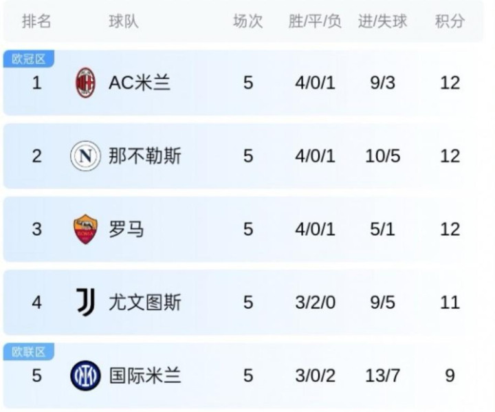5 - 米兰那不勒斯罗马积分优势