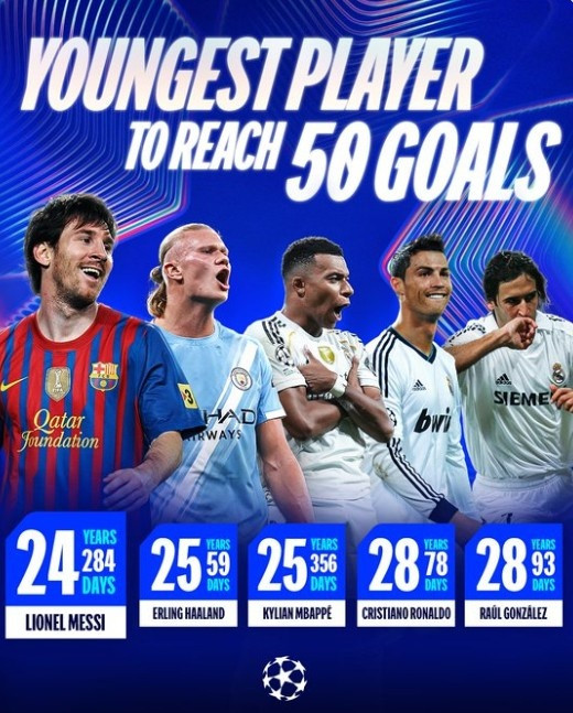 直播吧9月26日讯对阵那不勒斯的欧冠职业联赛 阶段赛事 ,哈兰德打进1球成功解锁欧冠50球里程碑。但是,篮球快讯哈兰德并不是欧冠历史打进50球最年轻球员, 法甲新闻网体育赛事阿根廷传奇梅西保持着这一记录 。